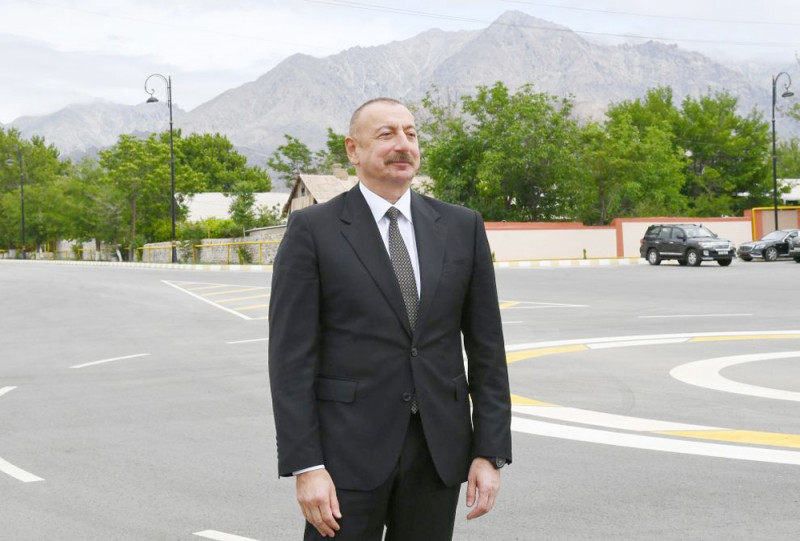 Ötən ilin oktyabr ayının 26-da isə İlham Əliyev qardaşı, Türkiyə Cümhuriyyətinin Prezidenti Rəcəb Tayyib Ərdoğanla birlikdə təməlini qoyduğu Zəngəzur dəhlizinin bir parçası olan Horadiz-Cəbrayıl-Zəngilan-Ağbənd avtomobil yolunun tikintisi də sürətlə davam edir. Uzunluğu 123,6 km olan bu yol 4-6 hərəkət zolaqlıdır. Tikinti işlərinin 2024-cü ildə başa çatdırılması nəzərdə tutulur. Avtomobil yolu başlanğıcını Füzulinin Əhmədbəyli kəndindən götürməklə layihələndirilib və I texniki dərəcəyə uyğun inşa edilir. Yolun ilk 77 kilometrlik hissəsinin 6, qalan 46,6 kilometrlik hissəsinin isə 4 hərəkət zolaqlı olması nəzərdə tutulub. Hərəkət zolaqlarına uyğun yol yatağının eni müvafiq olaraq 29,5 və 21,5 metr təşkil edir.