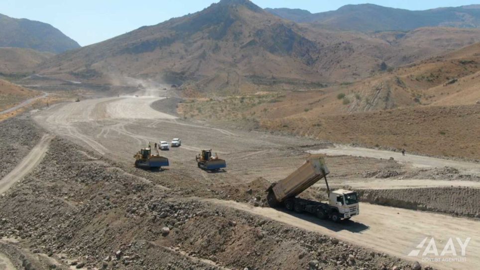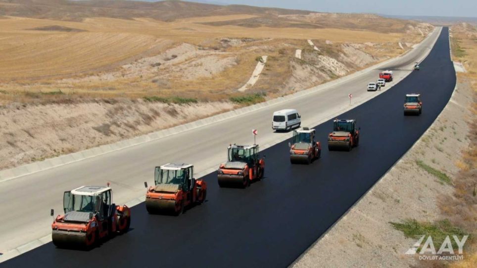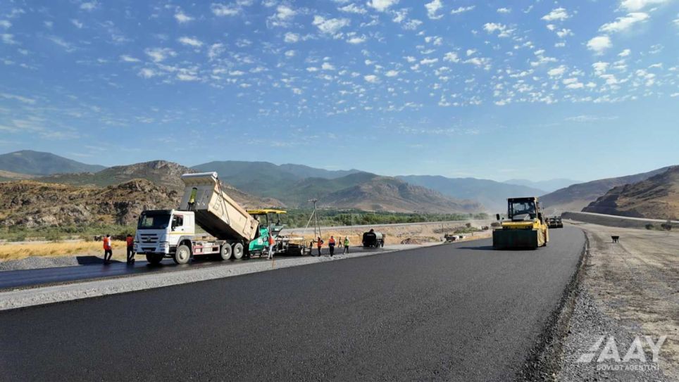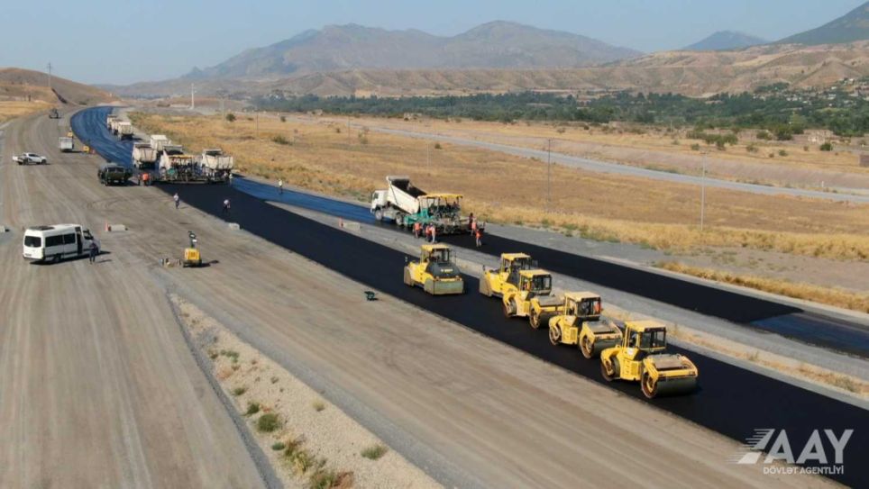 Yolun inşası ilə bağlı torpaq yatağının hazırlanması, layların sərilməsi və yol geyimi işləri əsasən tamamlanıb.