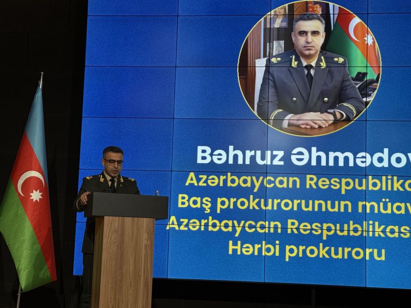 Azərbaycanın Hərbi prokuroru, Baş prokurorun müavini Bəhruz Əhmədov Vətən müharibəsi dövründə və ondan sonrakı mərhələdə hərbi prokurorluq orqanlarının həyata keçirdiyi hüquqi nəzarət tədbirlərindən danışıb, dövlətin müdafiə qabiliyyətinin və hərbi intizamın qorunmasında prokurorluğun mühüm rolunu qeyd edib.