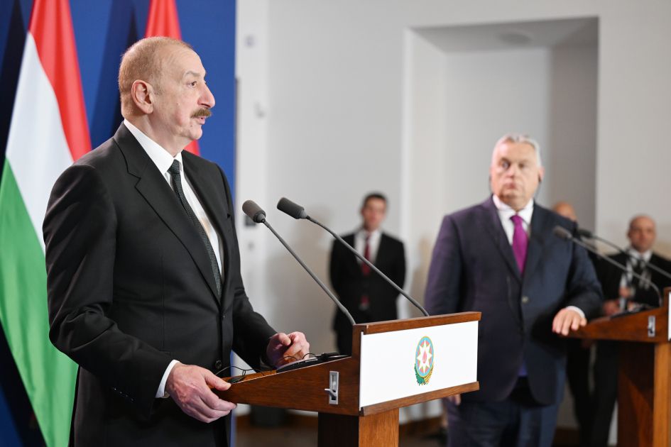 Çıxışımın sonunda Macarıstanı bütün əldə edilmiş uğurlar münasibətilə təbrik etmək istəyirəm. Biz bilirik ki, Macarıstan müstəqil siyasət aparan nadir ölkələrdən biridir. Xüsusilə Avropa İttifaqı çərçivəsində müstəqil siyasət aparmaq kifayət qədər çətindir. Çünki bir çox qaydalar var, bir çox oturuşmuş prinsiplər var və Avropa İttifaqının vahid xarici siyasəti təbii olaraq prinsiplərdən biridir. Buna baxmayaraq, dostum Viktor Orban həmişə Macarıstanın dövlət və milli maraqlarını hər şeydən üstün tutub. Biz bunu alqışlayırıq. Hər zaman Macarıstanın maraqlarını qoruyub və Macarıstan üçün nə xeyir gətirirsə, o təşəbbüslərə qoşulub, nə xeyir gətirmirsə, o təşəbbüslərdən həmişə uzaq olub. Yenə də deyirəm, Avropa İttifaqının içində ola-ola bu siyasəti aparmaq, deyə bilərəm ki, doğrudan da böyük qəhrəmanlıq tələb edir, siyasi iradə tələb edir və düşünülmüş siyasət tələb edir. Bütün bunlar da Macarıstanda var. Biz Macarıstanı çox sevirik, o cümlədən bu amillərə görə. Sizə və bütün dost macar xalqına bu istiqamətdə yeni uğurlar arzulayırıq.