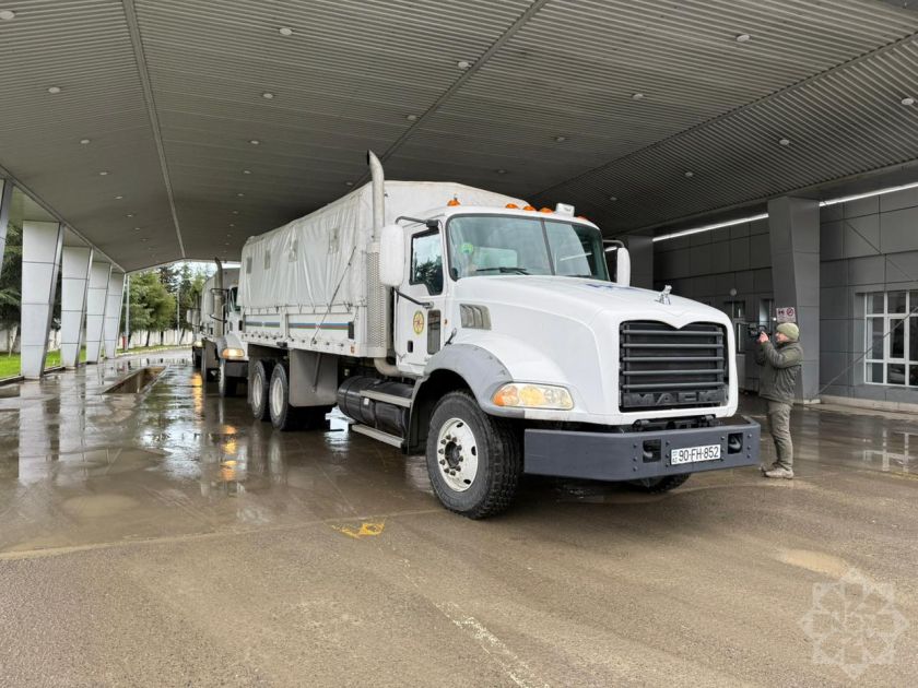 AZƏRTAC-ın bölgə müxbiri xəbər verir ki, humanitar yardım Fövqəladə Hallar Nazirliyinin avtomobilləri vasitəsilə sərhəd buraxılış məntəqəsinə gətirilib.
