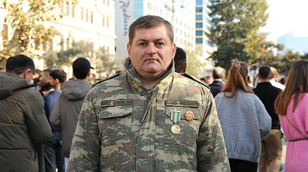 Bu arada bizə qələbə sevinci yaşadan XTQ-nin sabiq döyüşçüsü, ehtiyatda olan gizir Rahil Xəlilovla söhbət edirik. Rahilin döyüş yolu Kəlbəcərdən başlayıb. O, Cəbrayılın, Xocavəndin, Hadrutun, Füzulinin, Şuşanın azad olunması uğrunda gedən döyüşlərdə iştirak edib. Noyabrın 4-də Şuşa istiqamətində aparılan əməliyyatlarda yaralanan Rahil deyir ki, qələbə paradında qalib ordunun əsgəri kimi iştirak etmək həyatında fəxr etdiyi hadisələrdəndir: "Torpaqlarımızın azadlığı uğrunda canını verən şəhidlərimizin ruhu qarşısında baş əyirəm. Bizi qələbəyə aparan Müzəffər Ali Baş Komandana dərin minnətdarlığımı bildirirəm. Bu qələbə bütün xalqın qələbəsidir. Döyüşdə bizə ruh verən, qələbəyə aparan xalqımızın birliyi idi. Bu gün də həmin birliyi görürəm və böyük fərəh hissi ilə "Yaşa, Azərbaycan!" deyirəm".