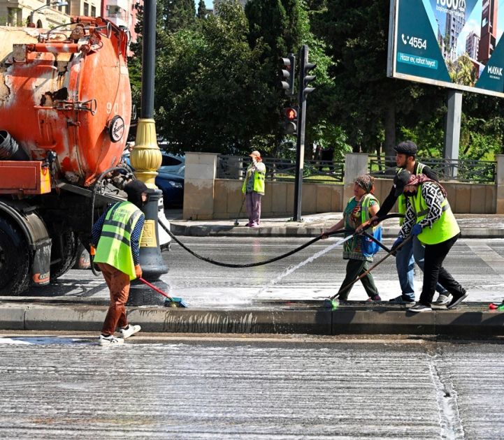 İyulun 12-də Bakı şəhər kommunal xidmətləri tərəfindən paytaxtda həyata keçirilən genişmiqyaslı təmizlik işləri çərçivəsində küçə və yol kənarlarına, həyət və məhəllələrə yayılan tozun təmizlənməsi, mövcud yaşıllıqlara qulluq göstərilməsi həyata keçirilib.