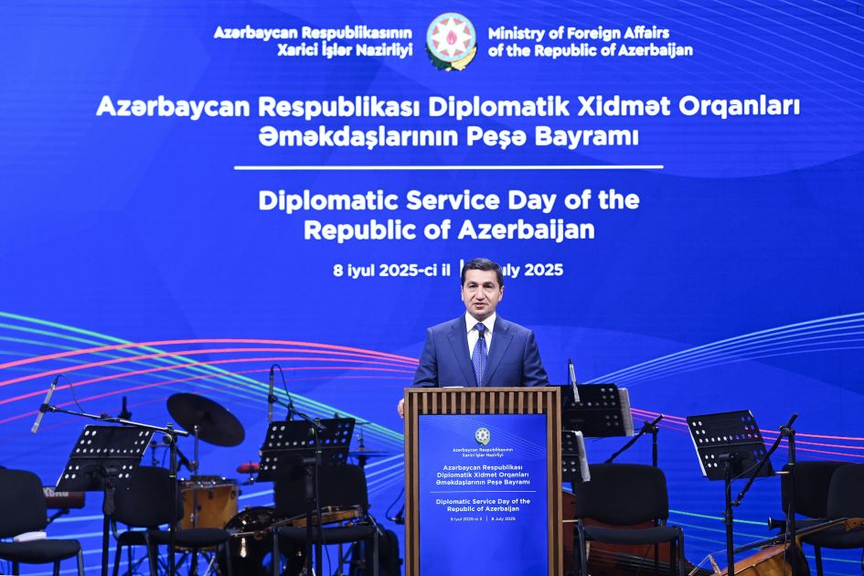 Tədbirdə Azərbaycan Respublikasının xarici işlər naziri Ceyhun Bayramov, Azərbaycan Respublikası Prezidentinin köməkçisi – Prezident Administrasiyasının Xarici siyasət məsələləri şöbəsinin müdiri Hikmət Hacıyev, ölkəmizdə akkreditə olunmuş diplomatik korpusun duayeni Məhəmməd Adil Embarş çıxış edərək peşə bayramı günü münasibətilə diplomatik xidmət orqanları əməkdaşlarına təbriklərini çatdırıb, onlara fəaliyyətlərində uğurlar arzu ediblər.