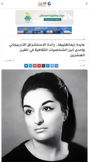 Əlcəzairin “Əl Hərir”, Tunisin “Shams-alyaoum”, Mavritaniyanın “tanidmedia.net” və “elmouritany.info” xəbər portallarında “Aida İmanquliyeva – Azərbaycan şərqşünaslığının qabaqcıl nümayəndəsi və XX əsrin görkəmli mədəniyyət xadimlərindən biridir” sərlövhəli məqalə yayımlanıb.
