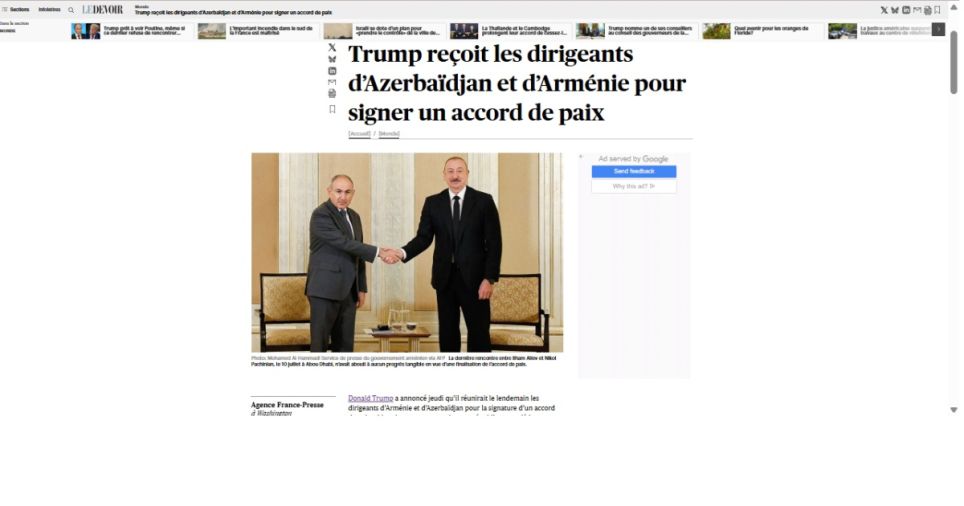 Fransa mətbuatı Azərbaycan və Ermənistan liderlərinin ABŞ Prezidenti ilə keçiriləcək görüşündən yazır