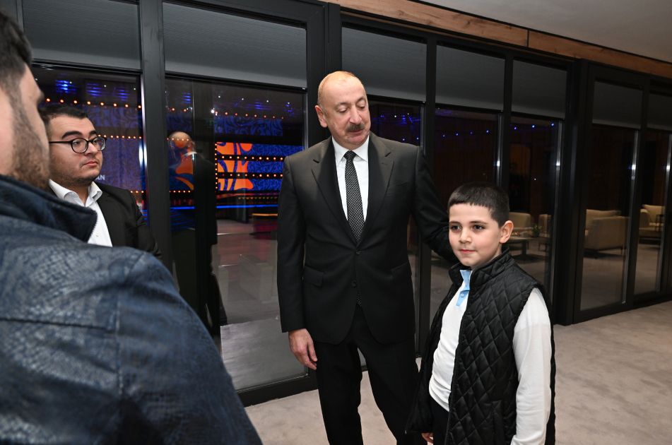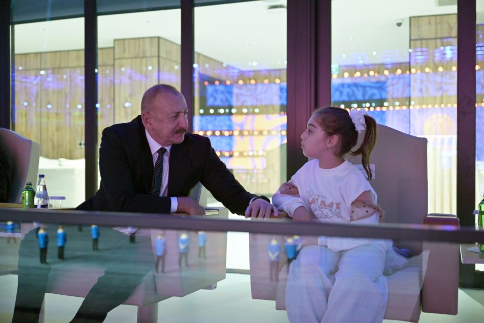 AZƏRTAC xəbər verir ki, tədbirdən əvvəl Azərbaycan Respublikasının Prezidenti İlham Əliyev və birinci xanım Mehriban Əliyeva Vətən müharibəsi zamanı Gəncəyə raket hücumları nəticəsində valideynlərini, ailə üzvlərini və yaxın qohumlarını itirmiş, həmçinin xəsarət almış uşaqlarla görüşüblər.