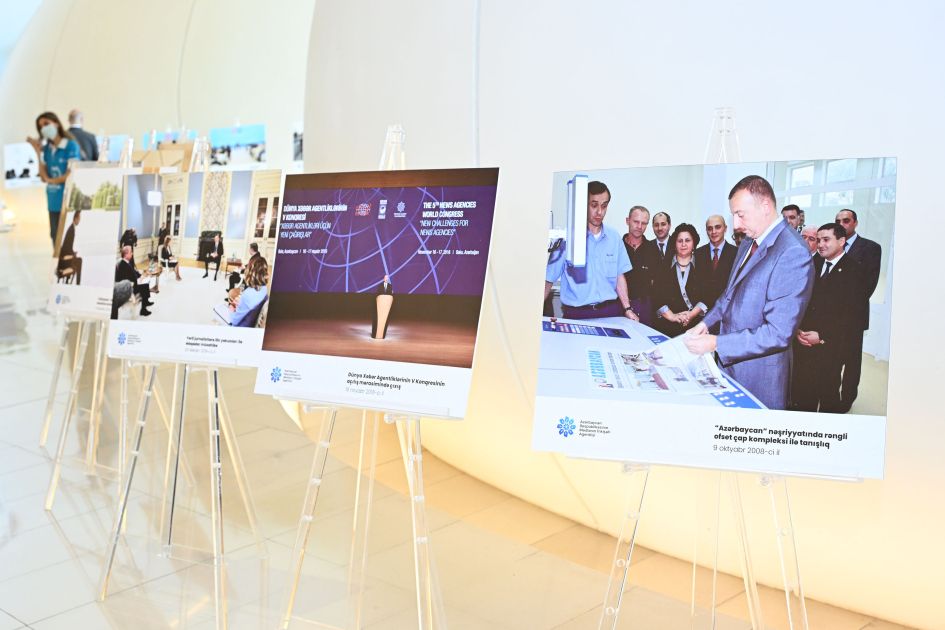 AZƏRTAC xəbər verir ki, iştirakçılar əvvəlcə Ulu Öndər Heydər Əliyevin və Prezident İlham Əliyevin jurnalistlərlə görüşlərini, Azərbaycan mətbuat tarixində mühüm rol oynamış nəşrləri əks etdirən “Azərbaycan mətbuatının 150 ili: Tarixdən günümüzə” adlı sərgiyə baxış keçiriblər.