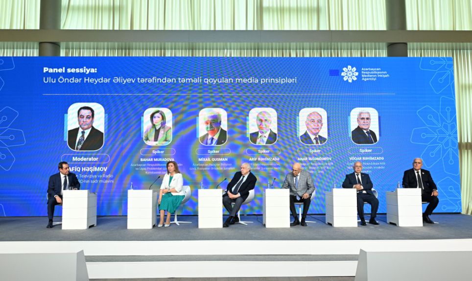Konfrans çərçivəsində “Azərbaycan Televiziya və Radio Verilişləri” QSC-nin sədr müavini Rafiq Həşimovun moderatorluğu ilə “Ulu Öndər Heydər Əliyev tərəfindən təməli qoyulan media prinsipləri” mövzusunda panel sessiya təşkil edilib.