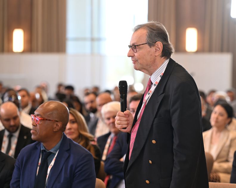 Paolo Liebl von Şirax: Cənab Prezident, Sizi görməyə çox şadam. Bu gün bu tədbirdə iştirak etməyimdən çox məmnunam. Üçüncü dəfədir ki, mən bu Forumda iştirak edirəm və burada Sizinlə bu görüşün əhəmiyyəti hər kəs üçün olduqca vacibdir. Bu, çox rəmzi bir məkandır və hər kəsə məlumdur ki, bu, çox mürəkkəb bir hekayənin gözəl sonluğudur. Siz öz baxışınızla bağlı fikirlərinizi artıq bölüşdünüz, ölkəniz təkcə bu bölgə üçün deyil, region üçün, Avropa, Mərkəzi Asiya və Yaxın Şərq arasında da bir körpü ola bilər. Siz infrastruktur layihələrini artıq qeyd etdiniz. Mənim sualım ondan ibarətdir ki, Sizcə ən əsas əhəmiyyətli inkişaf vektorları həm ölkəniz, həm regionunuz üçün nədən ibarətdir? Xüsusilə də birbaşa xarici sərmayə baxımından. Biz bir neçə dəfə bu barədə danışmışıq. Artıq bir müddət keçib. Sizin hökumətiniz bu sahədə fəal çalışır. Eyni zamanda, xarici sərmayələrin təşviqi baxımından hansı əlavə tədbirlər ola bilər və sizin iqtisadiyyatınızda ən perspektivli sahələr hansılardır? Bu işdə sizin etibarlı tərəfdaşlarınız hansı ölkələr və şirkətlər ola bilər? Təşəkkür edirəm.