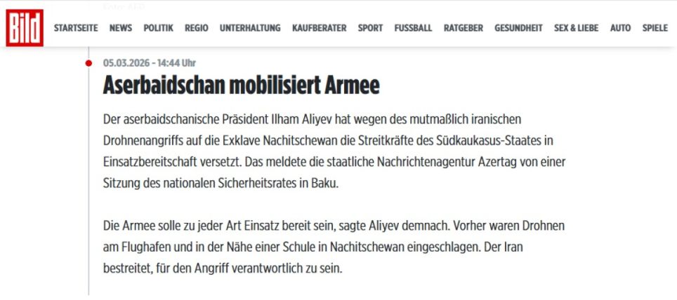 Almaniya mediası Azərbaycan ərazisinə PUA hücumlarına geniş yer verib