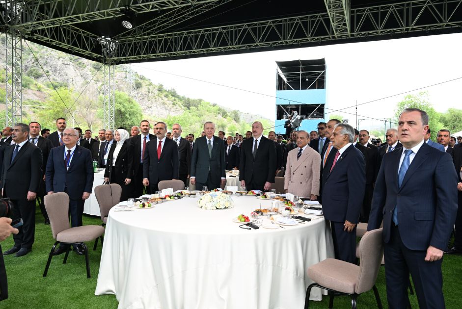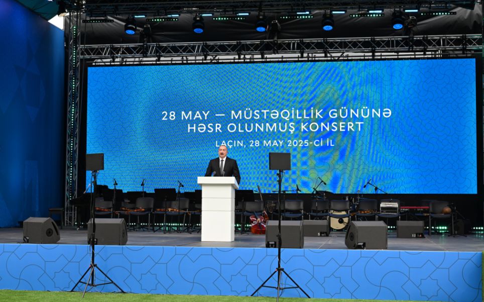 İndi isə azad edilmiş bütün torpaqlarda bərpa işləri, quruculuq işləri gedir. Böyük infrastruktur layihələri icra edilir - xəstəxanalar, məktəblər, üç hava limanı tikilib, dəmir yolları, avtomobil yolları salınıb, 70 kilometrə yaxın tunelin inşası sürətlə gedir. Bu gün bizim qonaqlarımız azad edilmiş torpaqlarda gedən işlərin bir hissəsi ilə tanış olmuşlar. Artıq Şərqi Zəngəzur və Qarabağ bölgələrimizdə 43 min insan yaşayır və çalışır. Bu bölgəyə həyat qayıdıb, bu bölgənin sahibləri qayıdıblar. Biz qayıtmalıydıq və qayıtmışıq. Biz Ermənistan ordusunu məğlub etmişik və bununla Azərbaycan xalqı fəxr edir. Artıq dörd ildən çoxdur ki, biz müzəffər xalq və dövlət kimi yaşayırıq və əbədiyyətə qədər yaşayacağıq. Bu gün əziz qardaşlarımın - Türkiyə Prezidentinin və Pakistanın Baş nazirinin bizimlə bərabər bu bayram tədbirlərində iştirakı, bizə göstərilən dəstək və həmrəylik artıq tamamilə yeni dünya miqyasında reallıqlar yaradır. Bizim gücümüz birliyimizdədir. Bu gün birliyimizi üçtərəfli formatda bir daha təsdiqlədik. Bu gün bayram konsertində səslənəcək mahnılar bir daha bizim birliyimizi, nə qədər zəngin mədəniyyətə malik olmağımızı göstərəcək. Əminəm ki, azad edilmiş Laçından üç ölkənin bu gün dünyaya verdiyi mesajlar lazımi ünvana çatacaq.