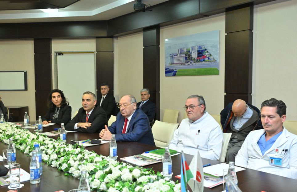 Milli Onkologiya Mərkəzinin Baş direktoru akademik Cəmil Əliyev beynəlxalq simpoziumun iştirakçılarını qəbul edib
