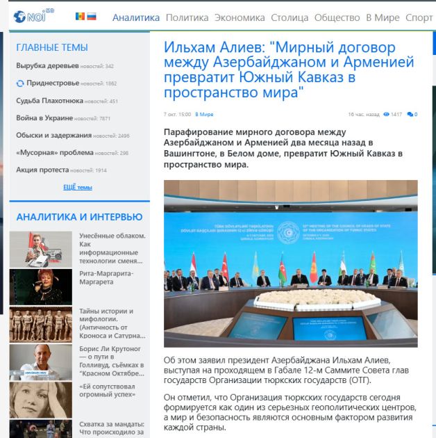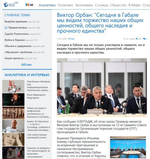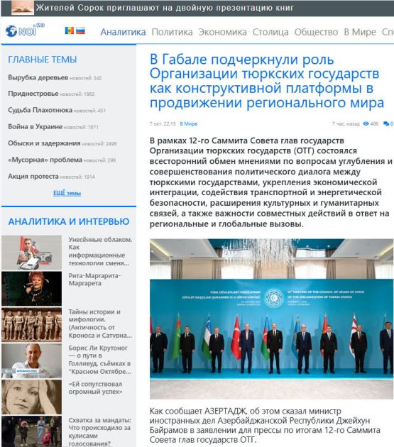 Moldovanın nüfuzlu “Noi.md” xəbər portal Qəbələdə Türk Dövlətləri Təşkilatının Dövlət Başçıları Şurasının 12-ci Zirvə Görüşü haqqında silsilə məqalələr dərc edib.