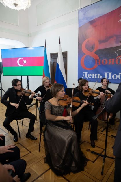 Bayram münasibətilə tədbir iştirakçılarını təbrik edən Azərbaycanın Rusiyadakı səfiri Rəhman Mustafayev 8 Noyabr – Zəfər Gününün əhəmiyyətini vurğulayaraq qeyd edib ki, bu tarixi hadisə təkcə xalqımızın deyil, həm də dostlarımız və müttəfiqlərimizin qələbəsi, habelə beynəlxalq hüquq prinsiplərinin təntənəsidir. Sözlərinə davam edən diplomat bildirib ki, bu Bayramın ən vacib dərsi odur ki, beynəlxalq hüquq prinsipləri yalnız onları həyata keçirməyə qadir və istəkli bir hərbi qüvvə tərəfindən dəstəkləndiyi təqdirdə dəyərlidir.