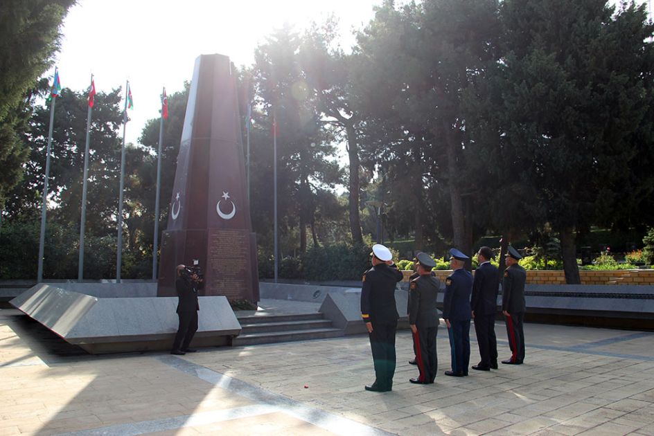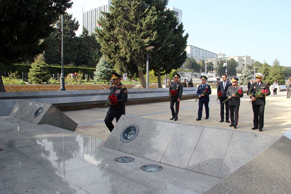 Sonra Şəhidlər xiyabanına gələn hərbi qulluqçular Vətən uğrunda canlarını fəda etmiş şəhidlərimizin məzarlarına və “Əbədi məşəl” abidəsinin önünə tər gül dəstələri düzüblər.