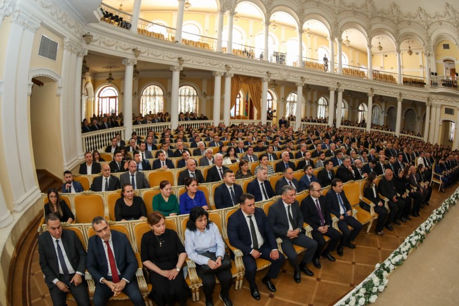 Tədbir Müslüm Maqomayev adına Azərbaycan Dövlət Akademik Filarmoniyasında geniş tərkibdə davam etdirilib. Rəsmi hissənin əvvəlində Ulu Öndər Heydər Əliyevin və Azərbaycanın ərazi bütövlüyü və suverenliyi uğrunda canlarını qurban vermiş qəhrəman Vətən övladlarının xatirəsi bir dəqiqəlik sükutla yad edilib, ardınca Dövlət Himni səsləndirilib.