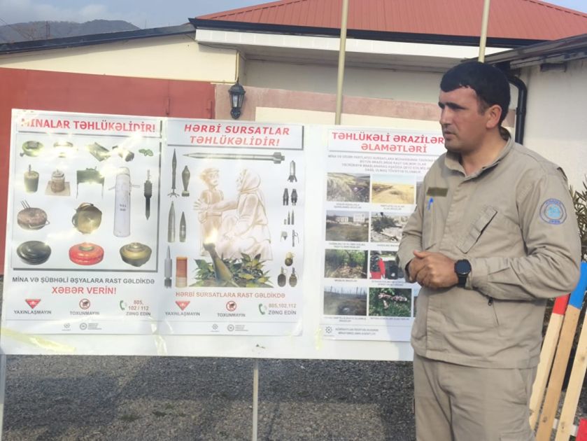 AZƏRTAC-ın bölgə müxbiri xəbər verir ki, Xocavənd rayonu Sos kəndinə köçən ailələr qarşılandıqdan sonra onlara ANAMA-nın əməkdaşları tərəfindən mina və partlamamış hərbi sursatların yaratdığı təhlükələr barədə ətraflı məlumat verilib. Ailələrə tanımadıqları naməlum əşya və cisimlərdən uzaq durmaları, belə hallarla qarşılaşdıqları təqdirdə isə aidiyyəti qurumlara məlumat vermələri tövsiyə olunub.