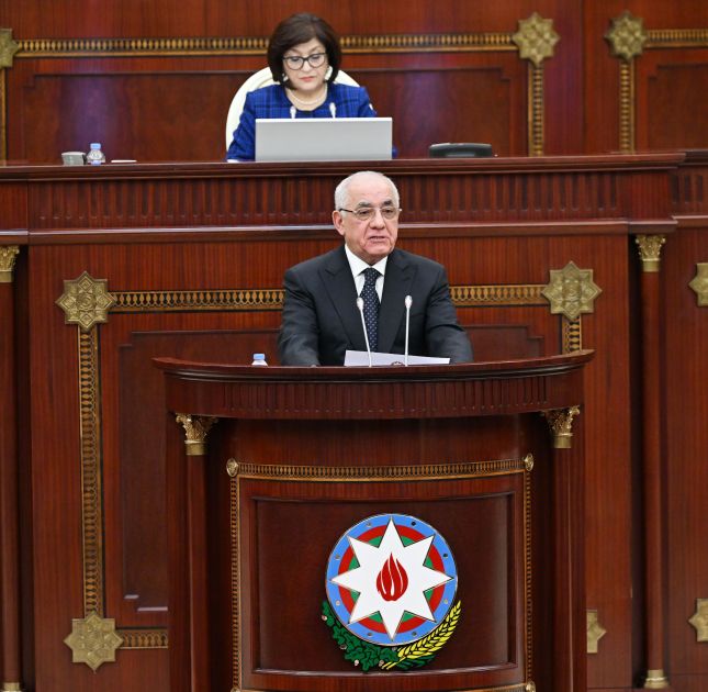 Sonra Baş nazir Əli Əsədov Nazirlər Kabinetinin 2025-ci ildəki fəaliyyəti haqqında hesabatı təqdim edib.