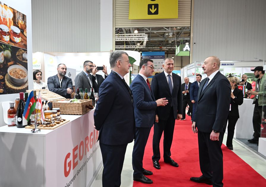 Prezident İlham Əliyev Gürcüstanın stendi ilə də tanış oldu. “Gürcüstan Milli Qrupu”nda 8 şirkət var. Onlar əsasən qida məhsullarını təqdim edirlər. Gürcüstan da bu sərgilərə böyük maraq göstərir. İndiyədək bu ölkə 10 dəfə sərgilərdə təmsil olunub.