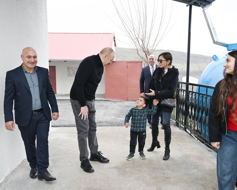 Sonra dövlətimizin başçısı və birinci xanım kəndə köçmüş Bəybala Qasımovun evində olublar.