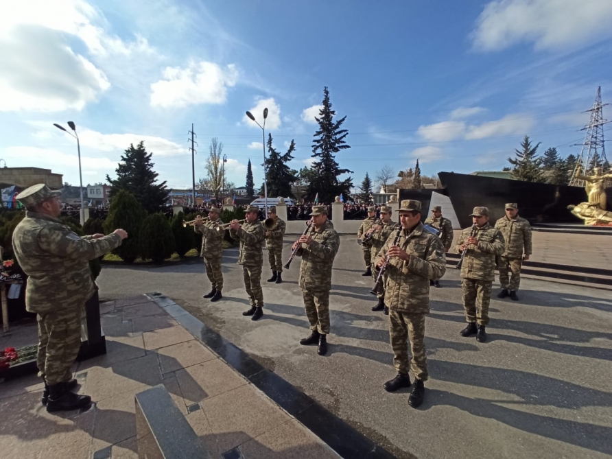 AZƏRTAC-ın bölgə müxbiri xəbər verir ki, şəhidin dəfn mərasimində şəhər icra hakimiyyətinin rəhbərliyi, Müdafiə Nazirliyinin, Səfərbərlik və Hərbi Xidmətə Çağırış üzrə Dövlət Xidmətinin əməkdaşları, hərbçilər, ictimaiyyət nümayəndələri, rayon sakinləri iştirak ediblər.