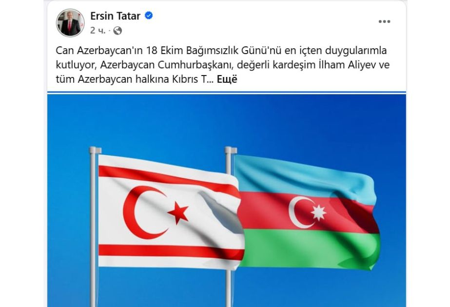 AZƏRTAC xəbər verir ki, Şimali Kipr liderinin şənbə günü sosial şəbəkədəki paylaşımında deyilir: “Dost Azərbaycanı Dövlət Müstəqilliyinin Bərpası Günü münasibətilə ürəkdən təbrik edirəm. Əziz qardaşım Prezident İlham Əliyevə və bütün Azərbaycan xalqına Türk Kipr xalqının sevgisini, salamlarını və təbriklərini çatdırıram”.