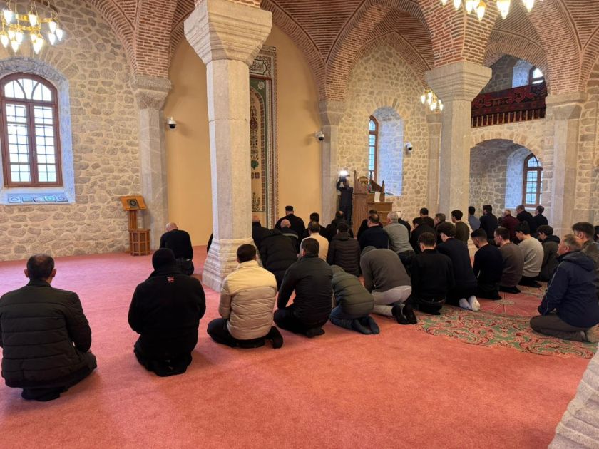 Ramazan bayramı ilə əlaqədar Şuşa şəhərindəki Yuxarı Gövhər Ağa məscidində bayram namazı qılınıb.