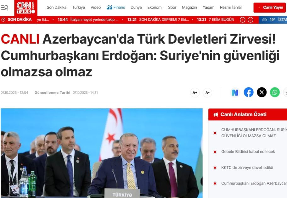 Türkiyə və Şimali Kipr Türk Cümhuriyyətinin (ŞKTC) aparıcı televiziya kanalları, informasiya agentlikləri, qəzetləri və xəbər portalları Qəbələdə keçirilən Türk Dövlətləri Təşkilatının (TDT) Dövlət Başçıları Şurasının 12-ci Zirvə Görüşünü geniş işıqlandırıblar.