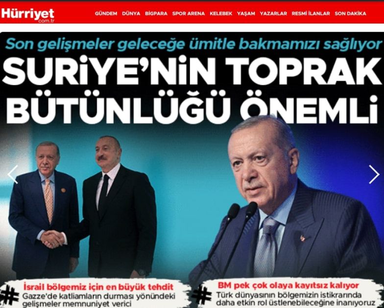 Türkiyə mətbuatı Türkiyə və Azərbaycan liderlərinin bəyanatlarına istinad edib, Prezident İlham Əliyevin Cənubi Qafqazda sülh və sabitlik məsələsinə dair mövqeyini dinləyicilərə çatdırıblar.