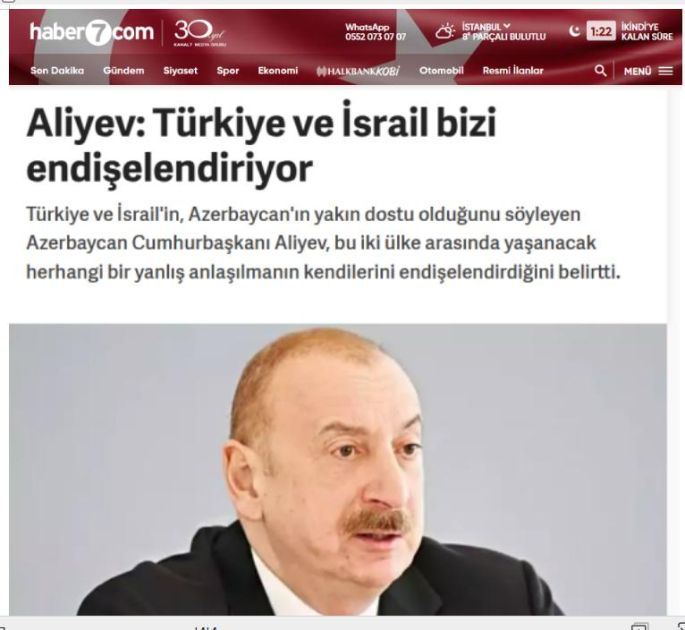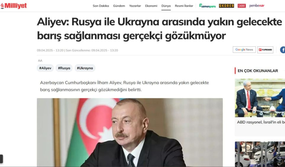 Prezident İlham Əliyevin Ermənistanla sülh perspektivləri, Kiyev ilə Moskva arasındakı münaqişə, Türkiyə ilə İsrail münasibətləri, Suriyadakı vəziyyətlə bağlı mövqeyinə diqqət yetirilib.
