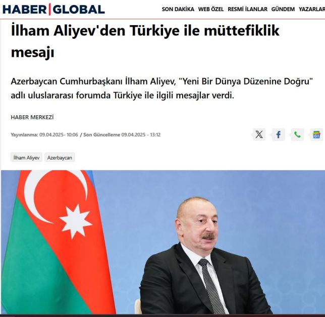 Türkiyə və Şimali Kipr Türk Cümhuriyyətinin (ŞKTC) aparıcı mediası Azərbaycan Prezidenti İlham Əliyevin ADA Universitetində keçirilən “Yeni dünya nizamına doğru” beynəlxalq forumdakı çıxışını geniş işıqlandırıb.