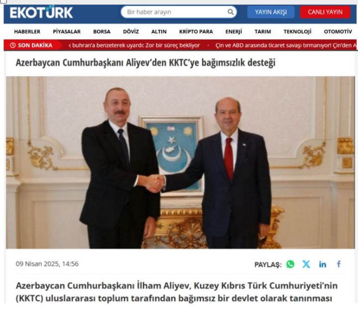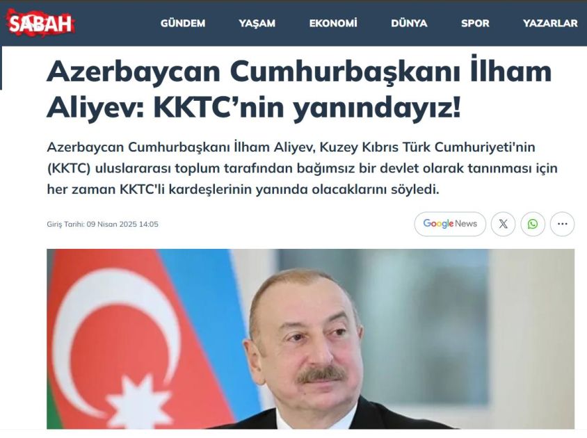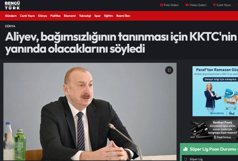 Materiallarda Azərbaycan dövlətinin başçısının ŞKTC-ni dəstəkləməyə hazır olması və Bakı ilə Ankara arasında müttəfiqliyin sarsılmazlığı barədə bəyanatlarına xüsusi vurğulanıb.