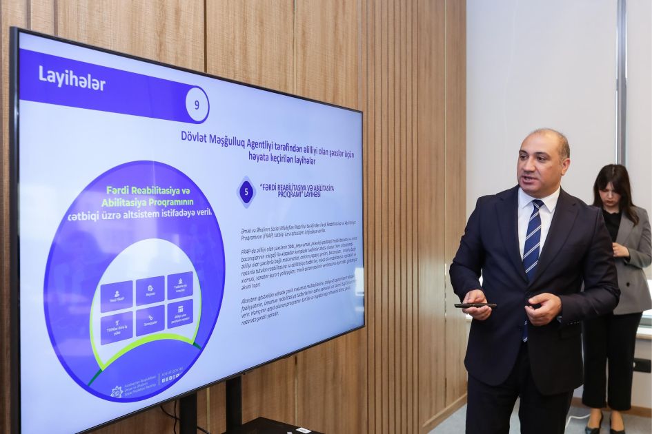 Nümayəndə heyəti üçün nazirlikdə “Əlilliyi olan şəxslərə dair siyasət və xidmətlər”, “Əlilliyi olan şəxslər üçün müyəssərliyin təmin olunması” və “Əlilliyi olan şəxslərin sosial həyatda iştirakı və məşğulluğunun təmin olunması” mövzularında təqdimatlar edilib.