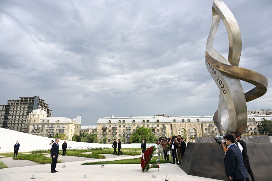 Daha sonra ölkəmizin ərazi bütövlüyü və suverenliyi uğrunda mübarizədə canlarından keçən şəhidlərimizin əziz xatirəsi minnətdarlıqla yad edilib, “Əbədi məşəl” abidəsinin önünə çələng və gül dəstələri qoyulub.