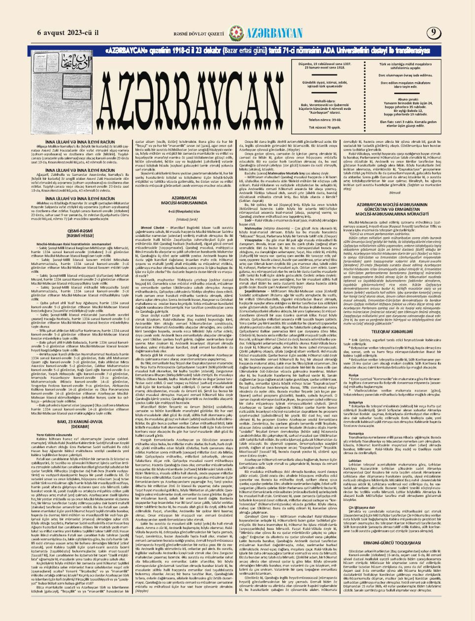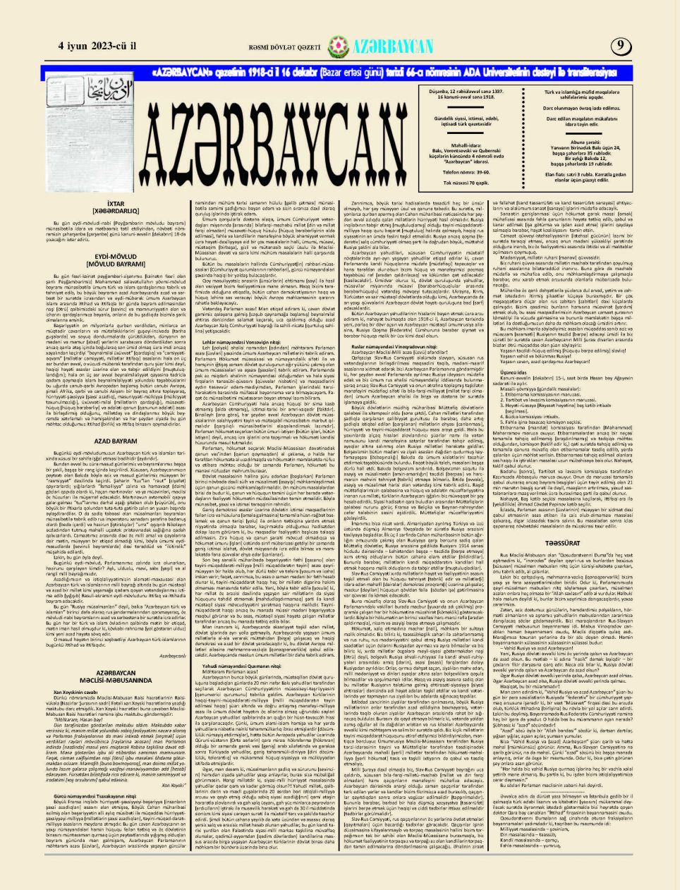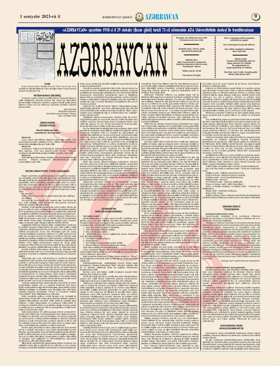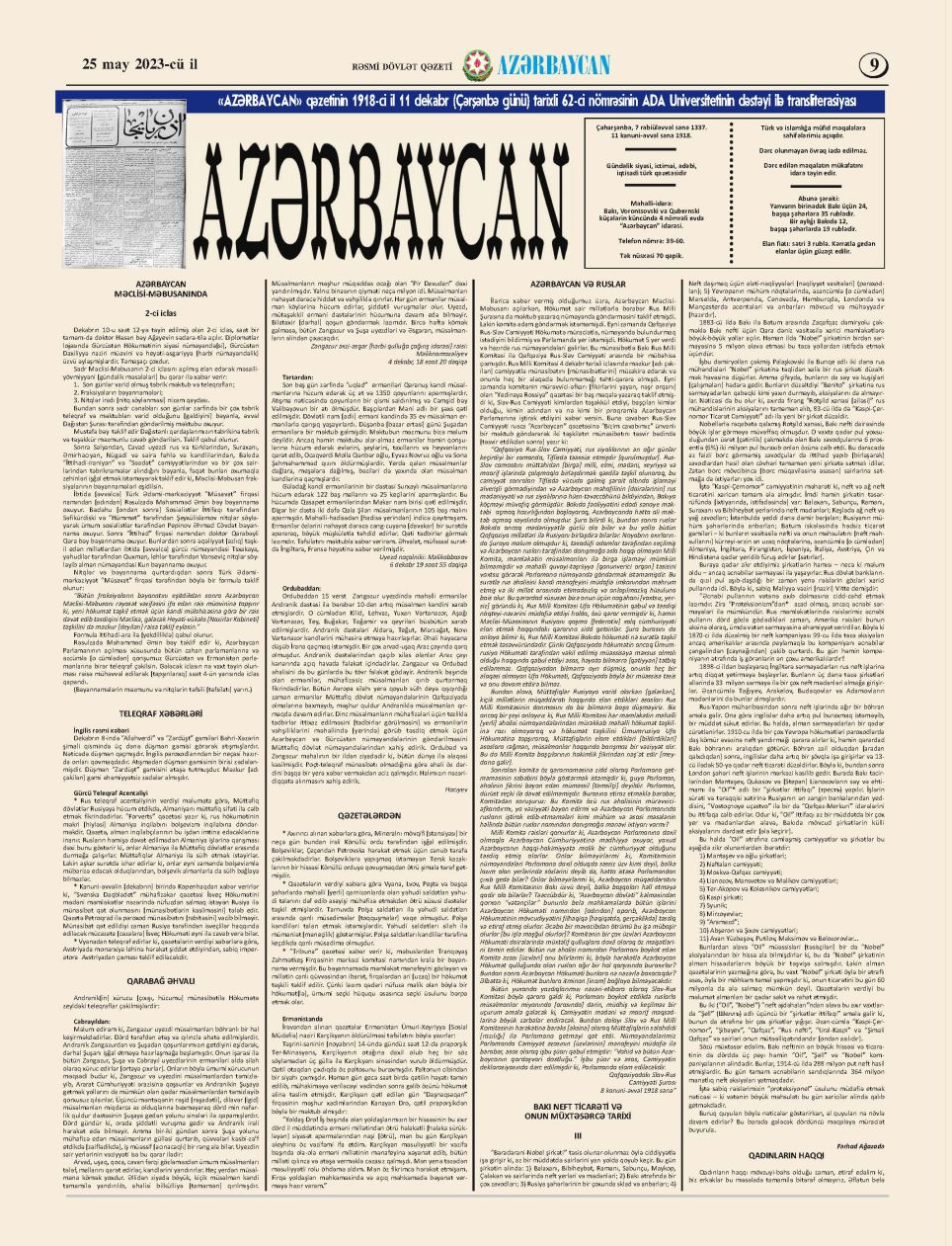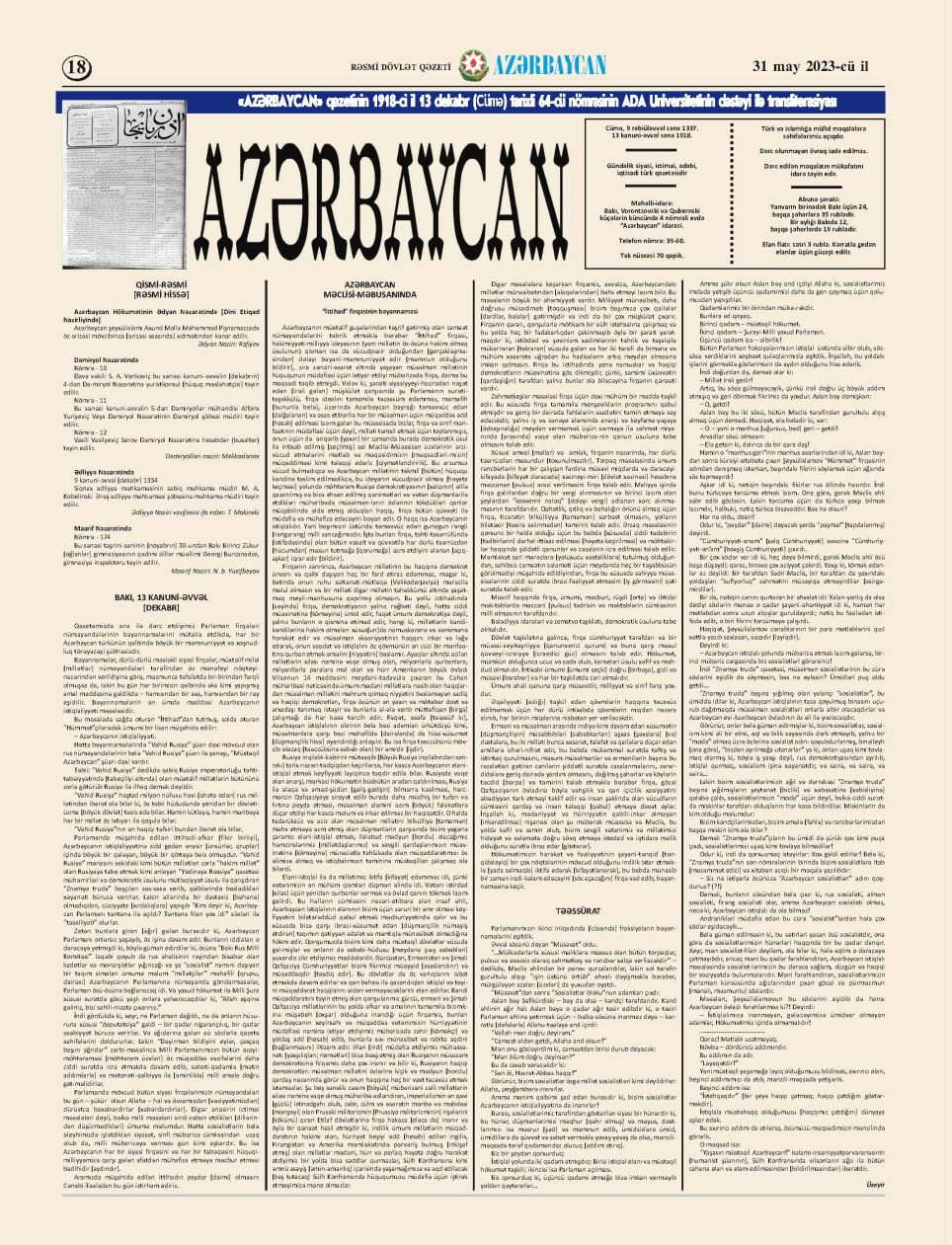 "Azərbaycan"-ın 1918-1920-ci illərdə dərc olunan nömrələri