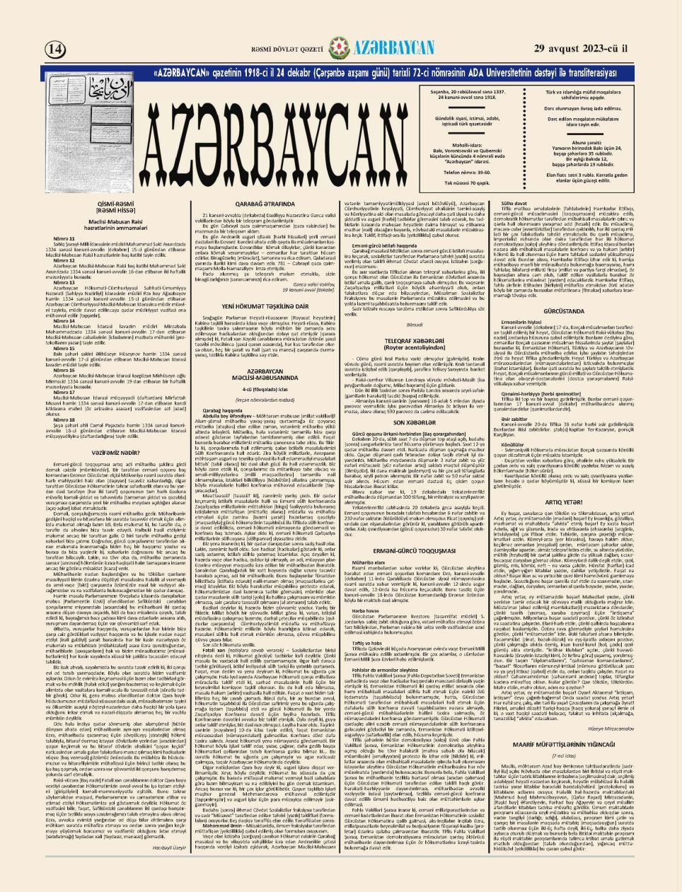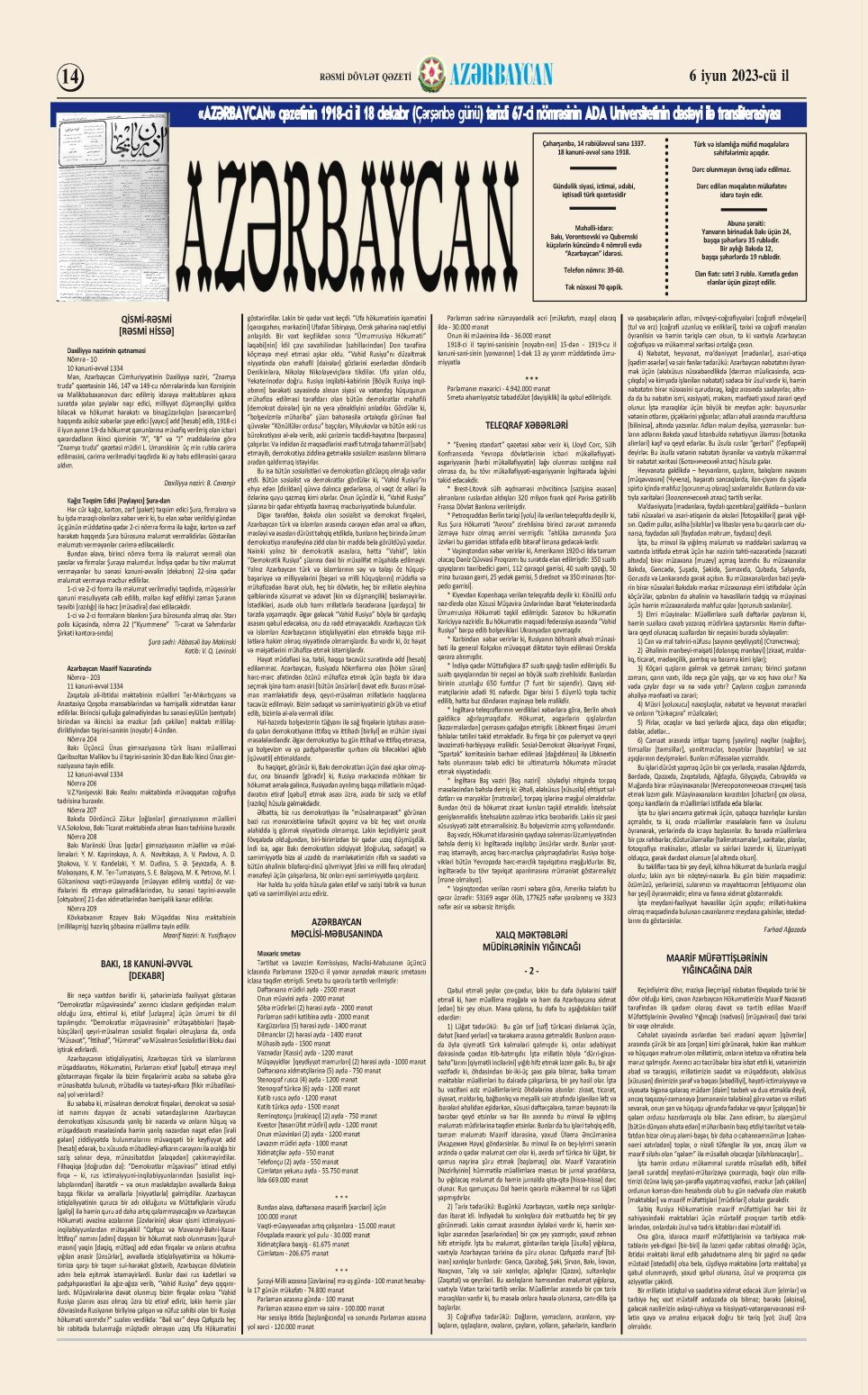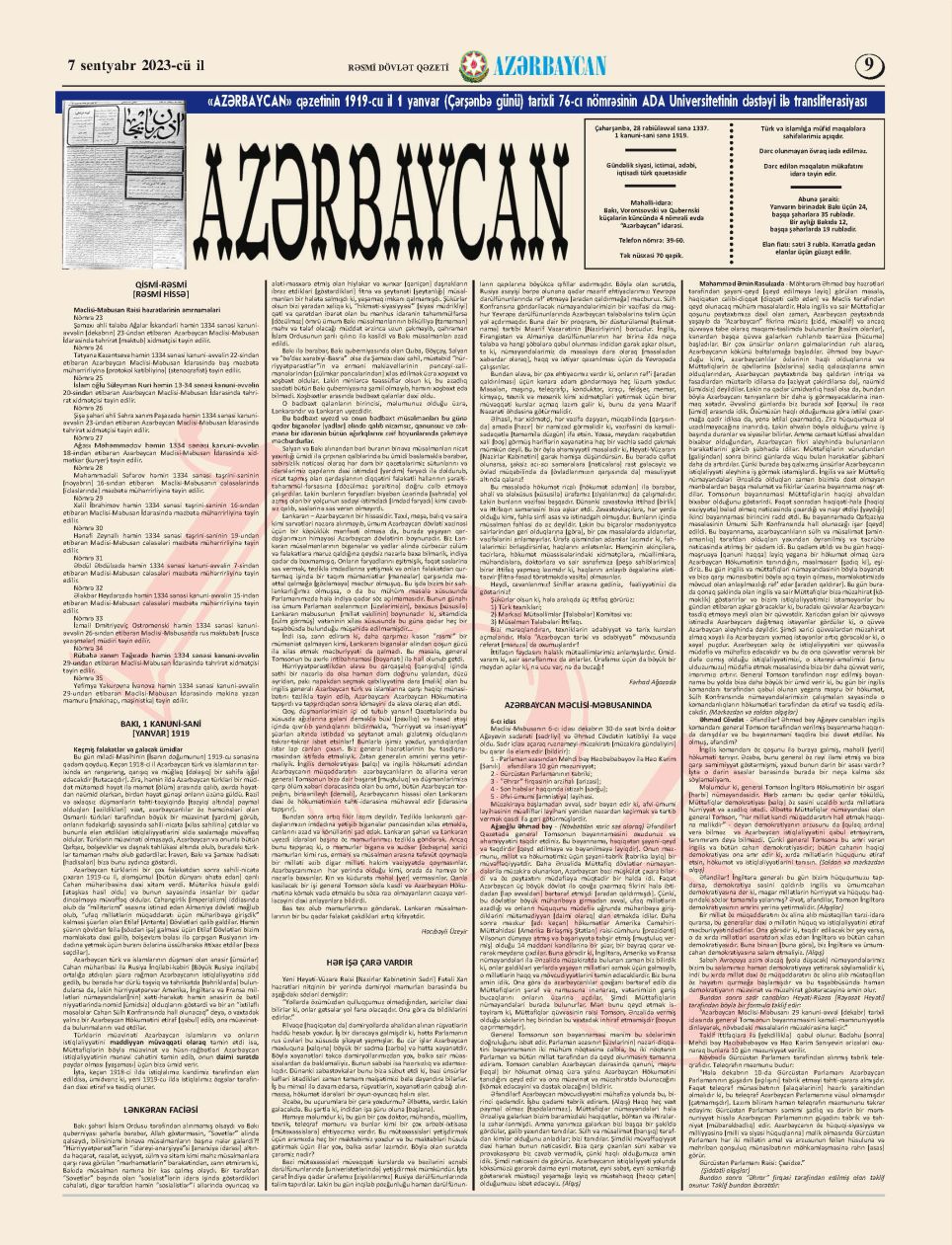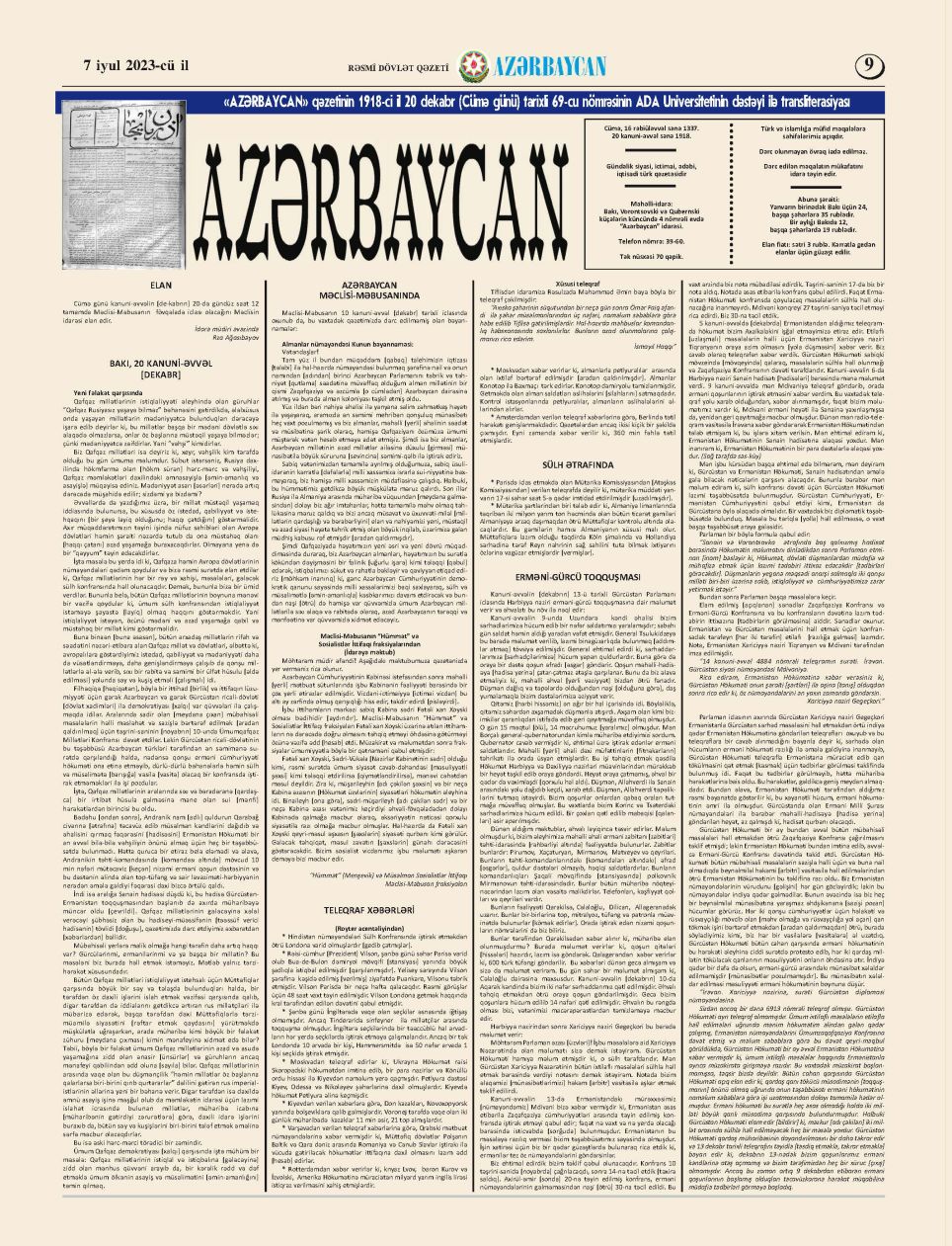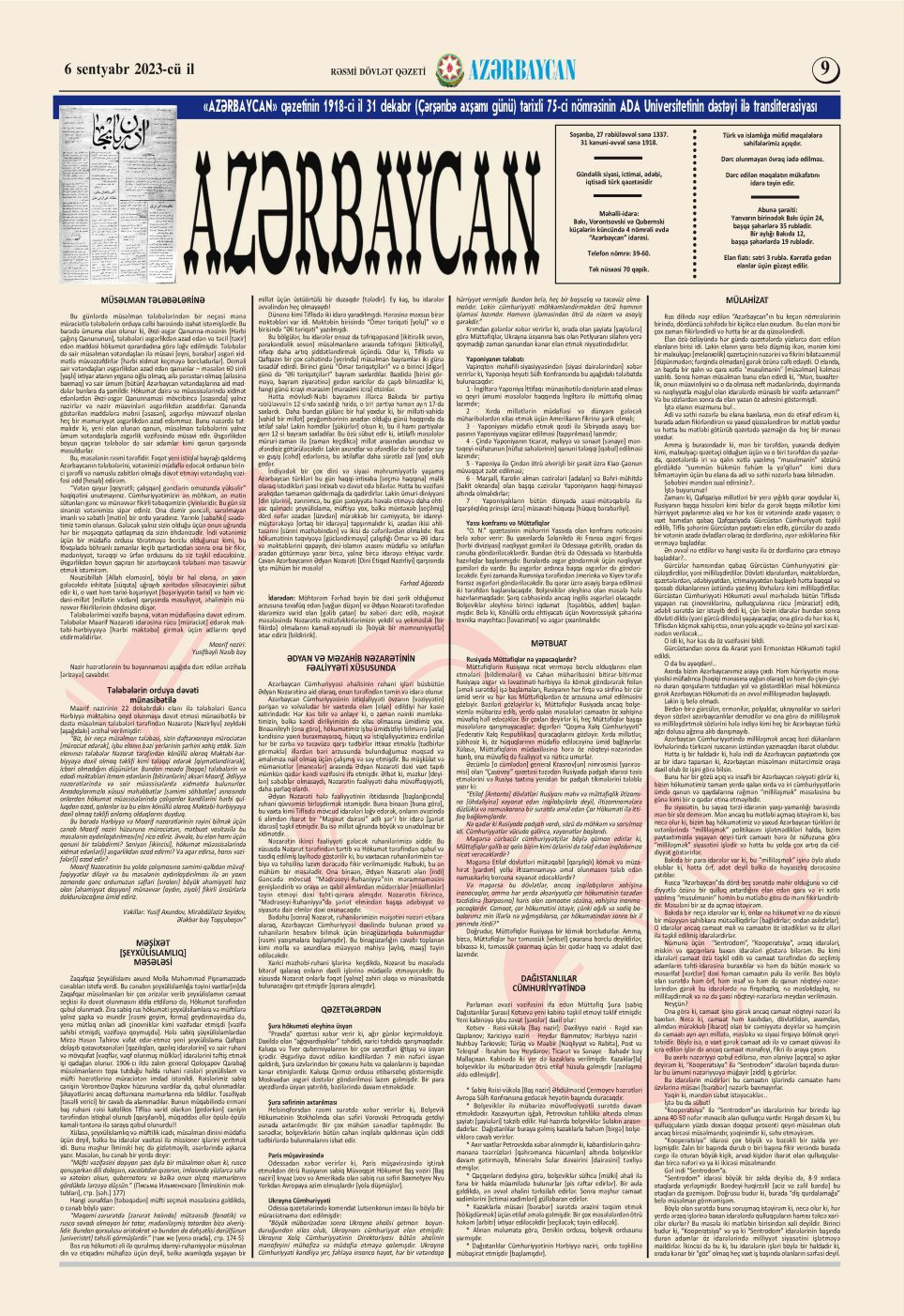 "Azərbaycan"-ın 1918-1920-ci illərdə dərc olunan nömrələri