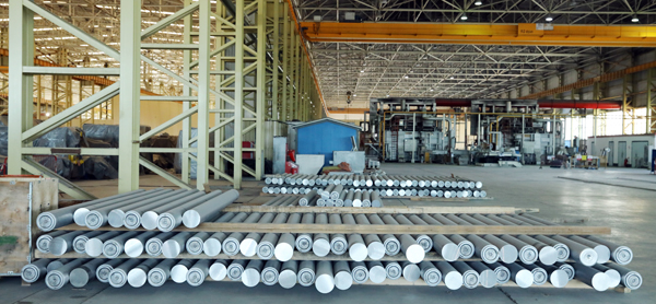 STP-də növbəti ünvanımız isə 2014-cü ildə istismara verilən Alüminium və Mis Profilləri Zavodu oldu. Müəssisənin girişində bizi administrativ departament direktoru Aruz Mikayılov və istehsalat direktoru Elşad Qasımov qarşılayırlar. Avadanlıqlarla tanış olmaq, istehsalat prosesini görmək üçün müəssisəni gəzərkən E.Qasımov zavodda istehsal olunan məhsullardan, onların hazırlanmasından danışır: "Zavodda alüminium boşluqlar, isti və soyuq seriyalı profillər, pəncərə sistemləri, elektrik şinləri, standart profillər, müxtəlif diametrli pəstahlar istehsal olunur. Burada hər biri 20-25 ton arası məhsul tutumuna malik iki əritmə sobası var. Bunlar işə salınanda 2-3 gün ərzində alüminium 720-730 dərəcəyədək qızdırılır. İlkin olaraq alınan alüminium külçələr sobalara yerləşdirilir. Analizlər götürülür və pəstahın tərkibi müəyyənləşdirilir. Alüminium maye halında olanda təxminən hər 8 saatdanbir 10 metrlik quyuya süzülür. Daha sonra pəstahlar digər iki sobada homogenezasiya prosesindən keçirilir. Üçüncü sobada isə soyutma prosesi gedir. Kəsim prosesindən sonra pəstahlar paketlənir".