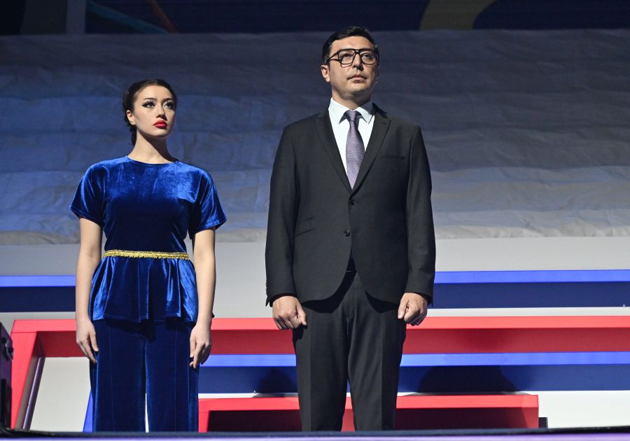 Rəsmi çıxışdan sonra Azərbaycan Respublikasının Dövlət Himni səsləndirilib.