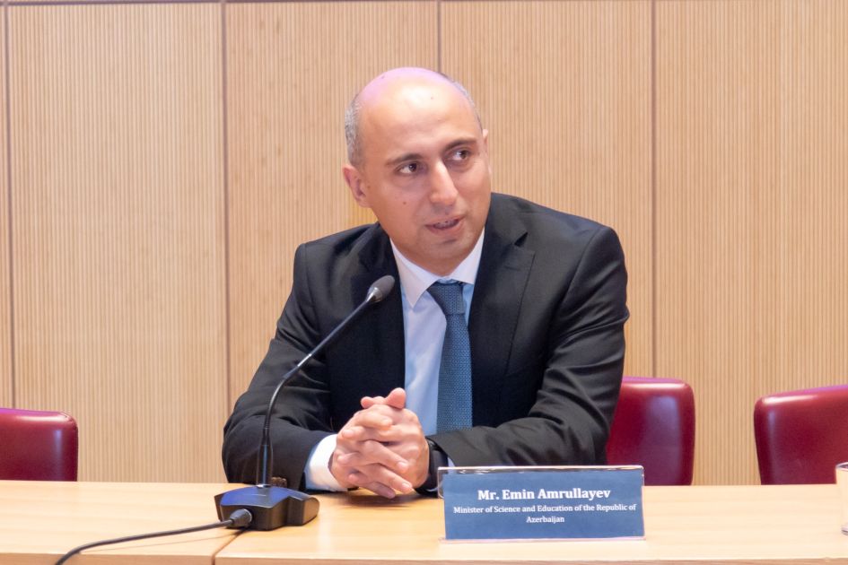 Elm və təhsil naziri Emin Əmrullayev təhsil gündəminin aktual məsələlərinə toxunaraq bu sahəyə elmi yanaşmanın və aparılan tədqiqatların vacibliyini xüsusi vurğulayıb. Nazir tədbir iştirakçıları ilə fikir mübadiləsi apararaq təhsilin bütün pillələrinə dair bir sıra maraqlı məqamları müzakirə edib. O, həmçinin müasir dövrün çağırışları fonunda təhsil sisteminin dəyişən reallıqlara uyğunlaşdırılmasının zəruriliyindən bəhs edib.