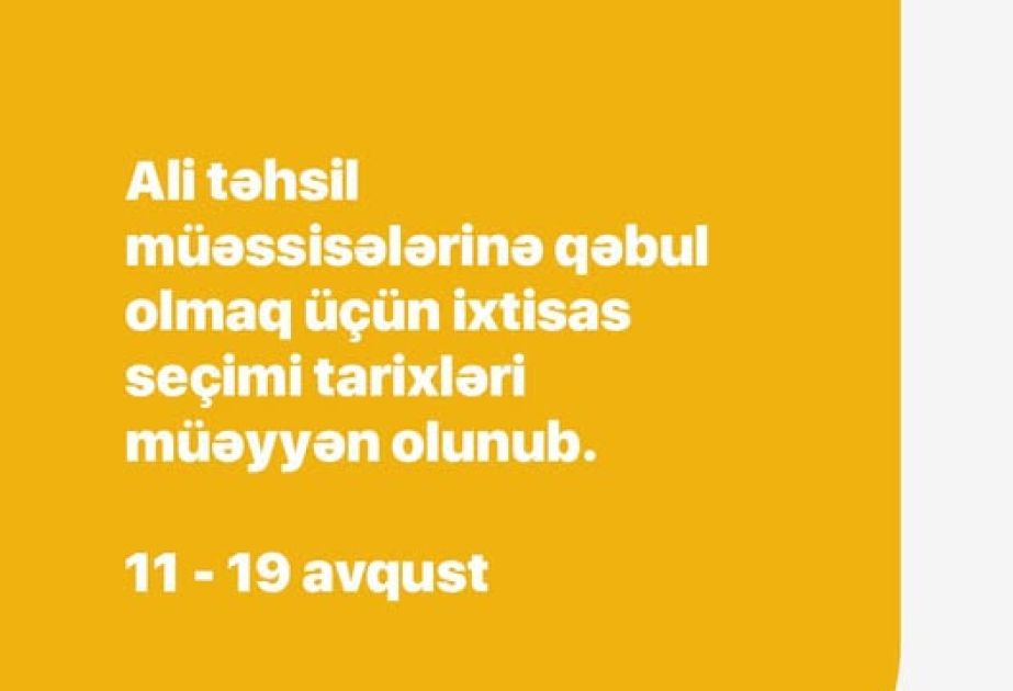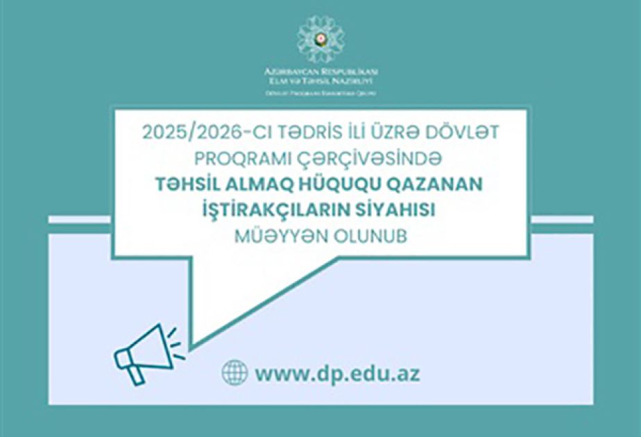 AZƏRTAC xəbər verir ki, dövlət sifarişi təhsilin bütün müddətini və 100 faiz təhsil xərclərini əhatə edir.