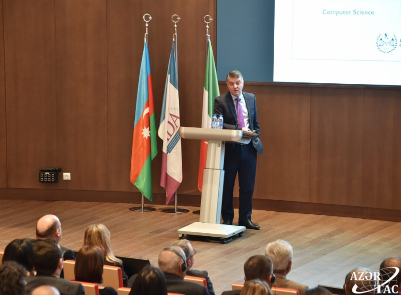 ADA Universitetinin rektoru səfir Hafiz Paşayev qonaqları salamlayaraq İtaliya-Azərbaycan Universitetinin tarixi və bu təşəbbüs çərçivəsində son 3 ildə görülən işlərdən bəhs edib. Rektor qeyd edib ki, bu təşəbbüs çərçivəsində təklif olunan ixtisasların məqsədi iqtisadiyyatın prioritet sahələri üzrə yüksəkixtisaslı kadrlar hazırlamaqdır.
