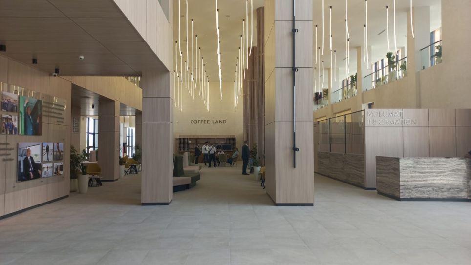 Ərazisi 8 hektara yaxın olan bu infrastruktur obyektində bütün zəruri otaqlar, həmçinin gözləmə zalları, bilet kassaları, kitabxana, mağazalar, əyləncə zonaları, restoran və istirahət guşələri yaradılıb.