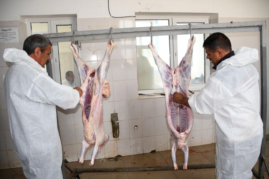 Sonra sanitariya qaydalarına və dini ənənələrə əməl edilməklə qurbanlıq qoyunlar kəsilib, şəhid ailələrinə, qazilərə və aztəminatlı şəxslərə göndərilib.