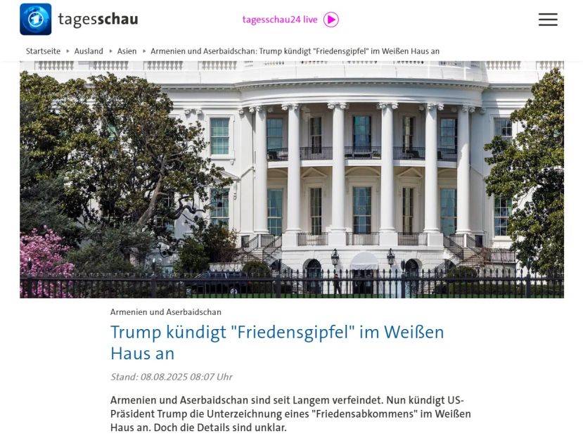 Almaniyanın bir sıra nüfuzlu media orqanlarının saytında Azərbaycan Prezidenti İlham Əliyevin və Ermənistanın Baş naziri Nikol Paşinyanın ABŞ Prezidenti Donald Trampın dəvəti əsasında Vaşinqtonda keçiriləcək görüşü barədə məqalələr yayımlanıb.