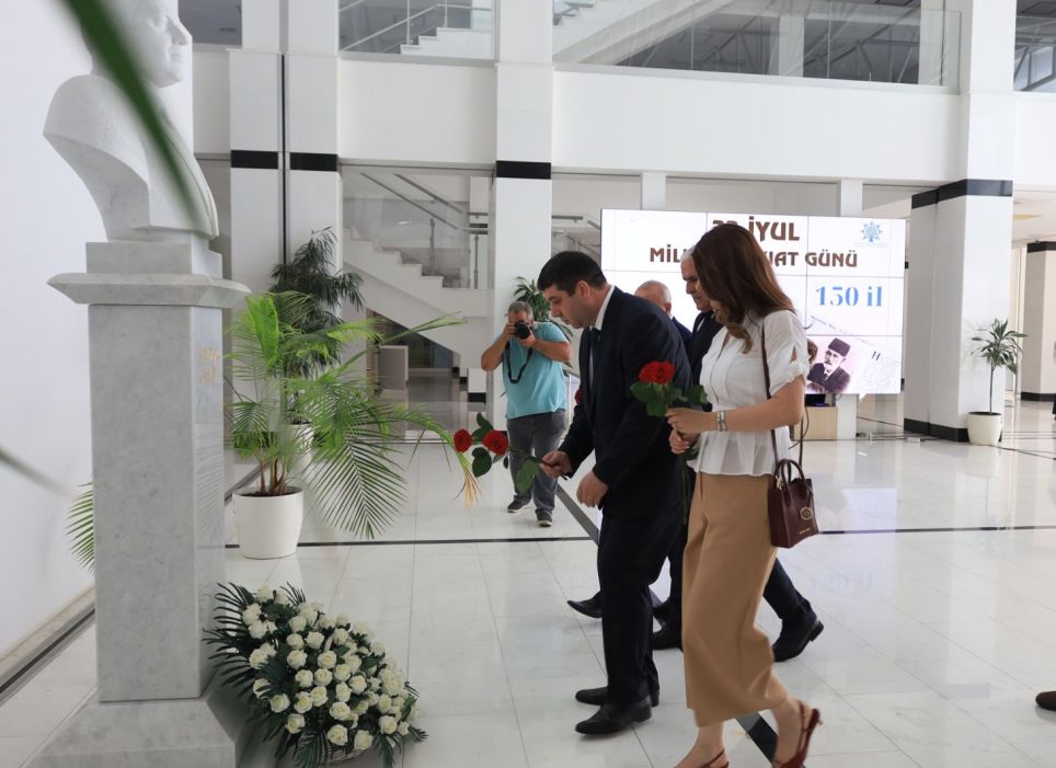 Əvvəlcə tədbir iştirakçıları Mərkəzi Elmi Kitabxananın inzibati binasında Ulu Öndər Heydər Əliyevin büstü önünə tər gül dəstələri düzüb, Ümummilli Liderin əziz xatirəsini dərin ehtiramla yad ediblər.