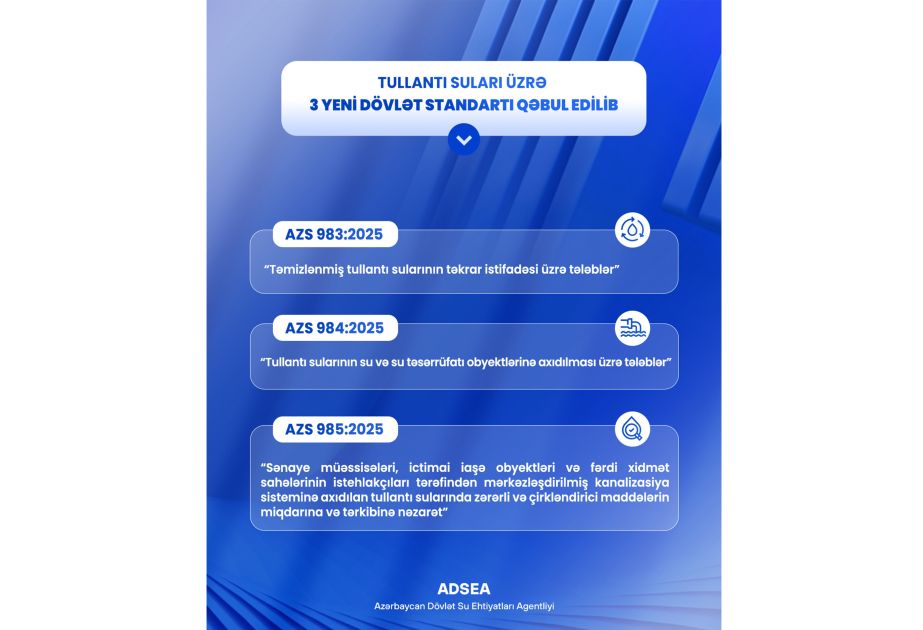 Tullantı suları üzrə 3 yeni dövlət standartı qəbul edilib