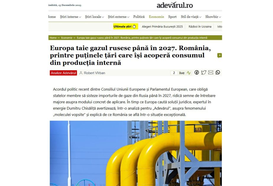 Rumıniya nəşri : Avropanın Rusiyasız qaz dövrünə girişi başlanğıcda çətinliklə üzləşəcək