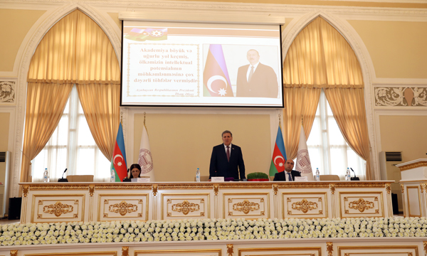"Bu gün Azərbaycan Milli Elmlər Akademiyası Prezident İlham Əliyevin elan etdiyi "Heydər Əliyev İli"ndə ölkəmizin ictimaiyyəti qarşısında hesabat verir. Akademiyanın bugünkü həqiqi və müxbir üzvlərinin mütləq əksəriyyəti Heydər Əliyev epoxasında böyük elmi mühitə vəsiqə almış elm adamlarından ibarətdir. 1945-ci ildə yaradılmış Milli Elmlər Akademiyası Ümummilli Liderimiz Heydər Əliyevin Azərbaycana rəhbərlik etdiyi tarixi mərhələlərdə özünün həqiqi inkişafına nail ola bilib. Müstəqillik dövründə görkəmli dövlət xadimi Heydər Əliyev Azərbaycan elmini cəmiyyətdə baş vermiş böhrandan xilas edib və bu elm ocağına Milli Elmlər Akademiyası statusu verib.