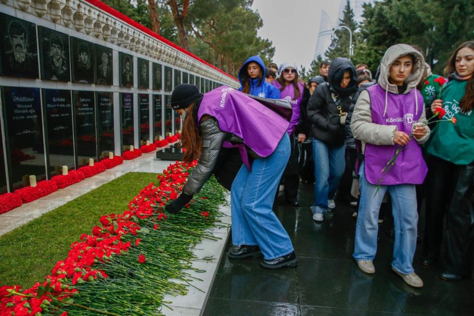 AKTİ-dən verilən məlumata görə, ölkənin aparıcı könüllü təşkilatlarının rəhbər və nümayəndələri, Azərbaycan Könüllüləri yanvarın 20-də - Ümumxalq Hüzn Günündə ölkəmizin azadlığı və müstəqilliyi uğrunda canından keçən qəhrəmanların şərəfli xatirəsinə ehtiram ifadəsi olaraq Şəhidlər Xiyabanını ziyarət edib, “Əbədi məşəl” abidəsinin önünə əklil qoyublar.